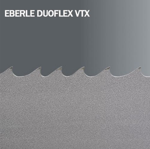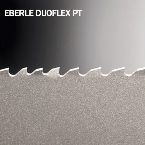 Биметаллическая ленточная пила (М42). Основным преимуществом является универсальность, можно работать с любыми материалами, не меняя саму оснастку. В этой категории представлены качественные ленточные пилы по металлу EBERLE (Германия), зубья полотен которых выполнены из быстрорежущей стали с содержанием 10% молибдена и 8% кобальта.