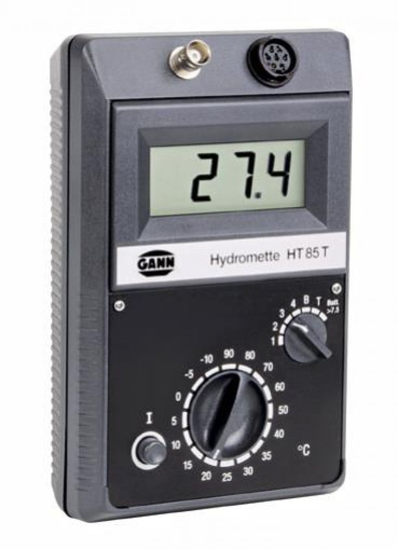 Игольчатый влагомер GANN HT 85 Т предназначен для высокоточного измерения влажности пиломатериалов и изделий из древесины твердых и мягких пород в процессе производства, сушки и хранения. Принцип работы – преобразование электрического сопротивления древесины в проценты влажности. Температура измеряемой древесины вводится при помощи переключателя температурной коррекции. Для работы влагомера GANN HT 65 необходимы кабель и выносная рукоятка, которая ограждает прибор от давления на него при внедрении игл в древесину.